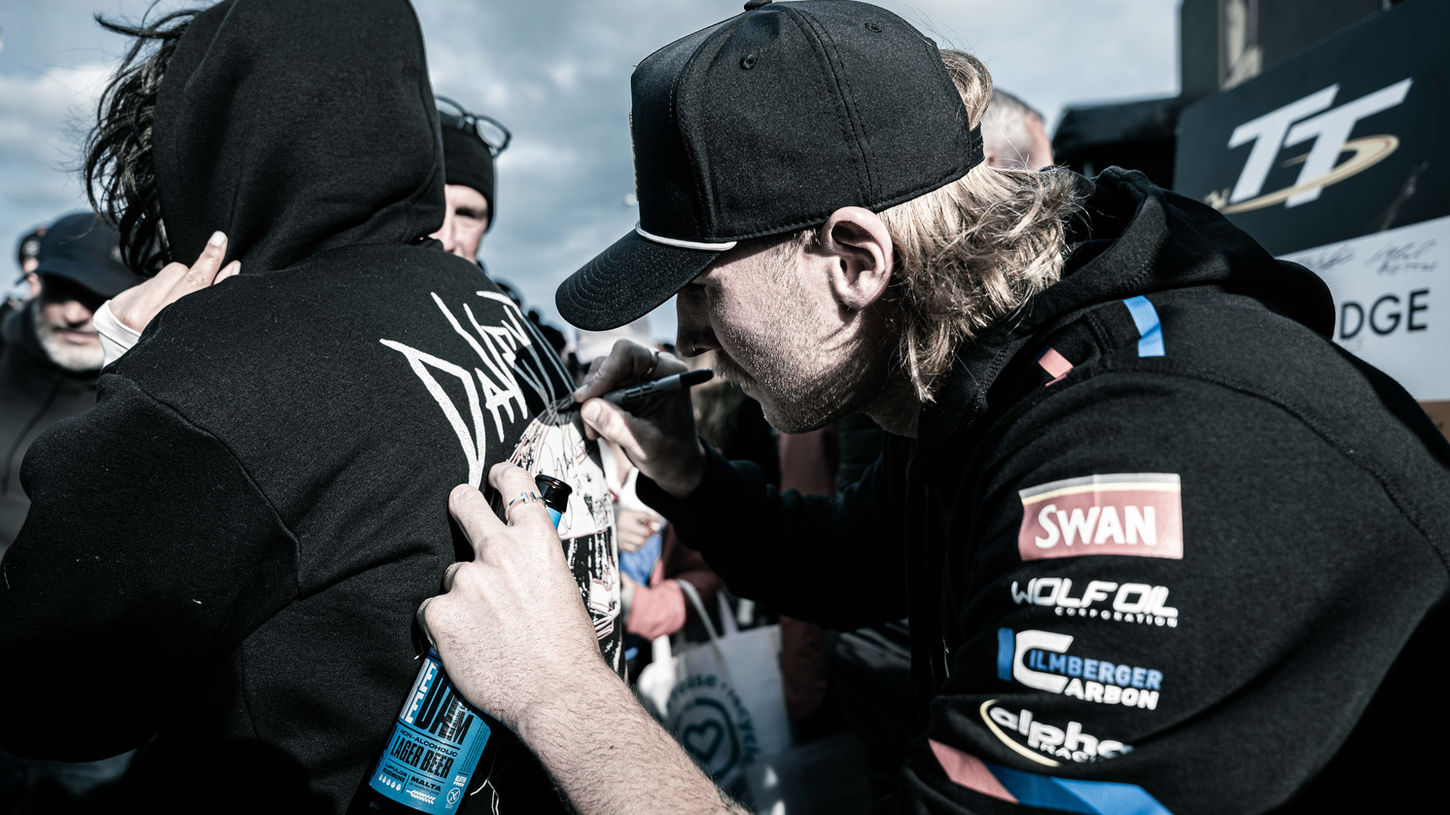 From the road to the crowd — Davey Todd shares the TT with his fans.